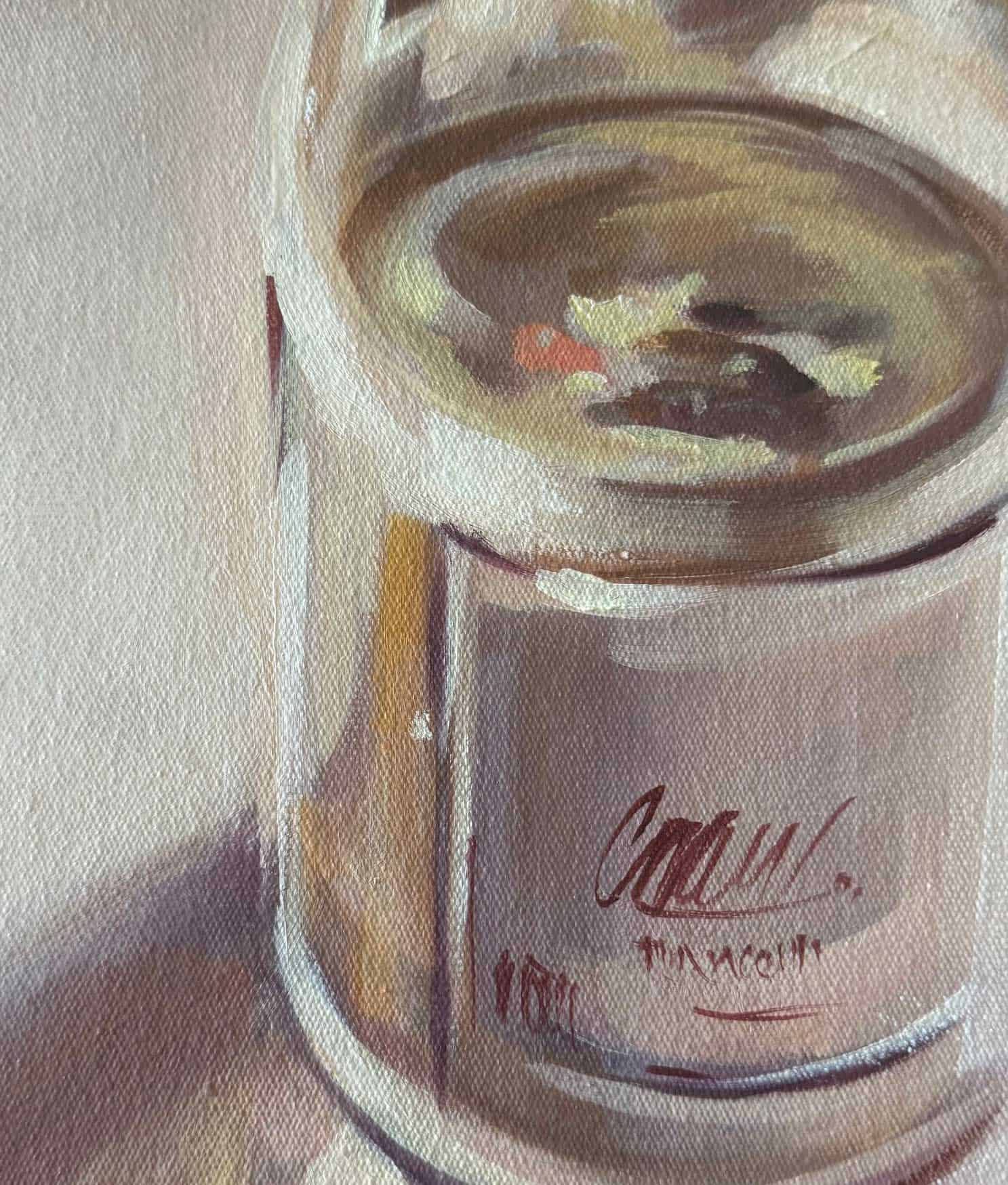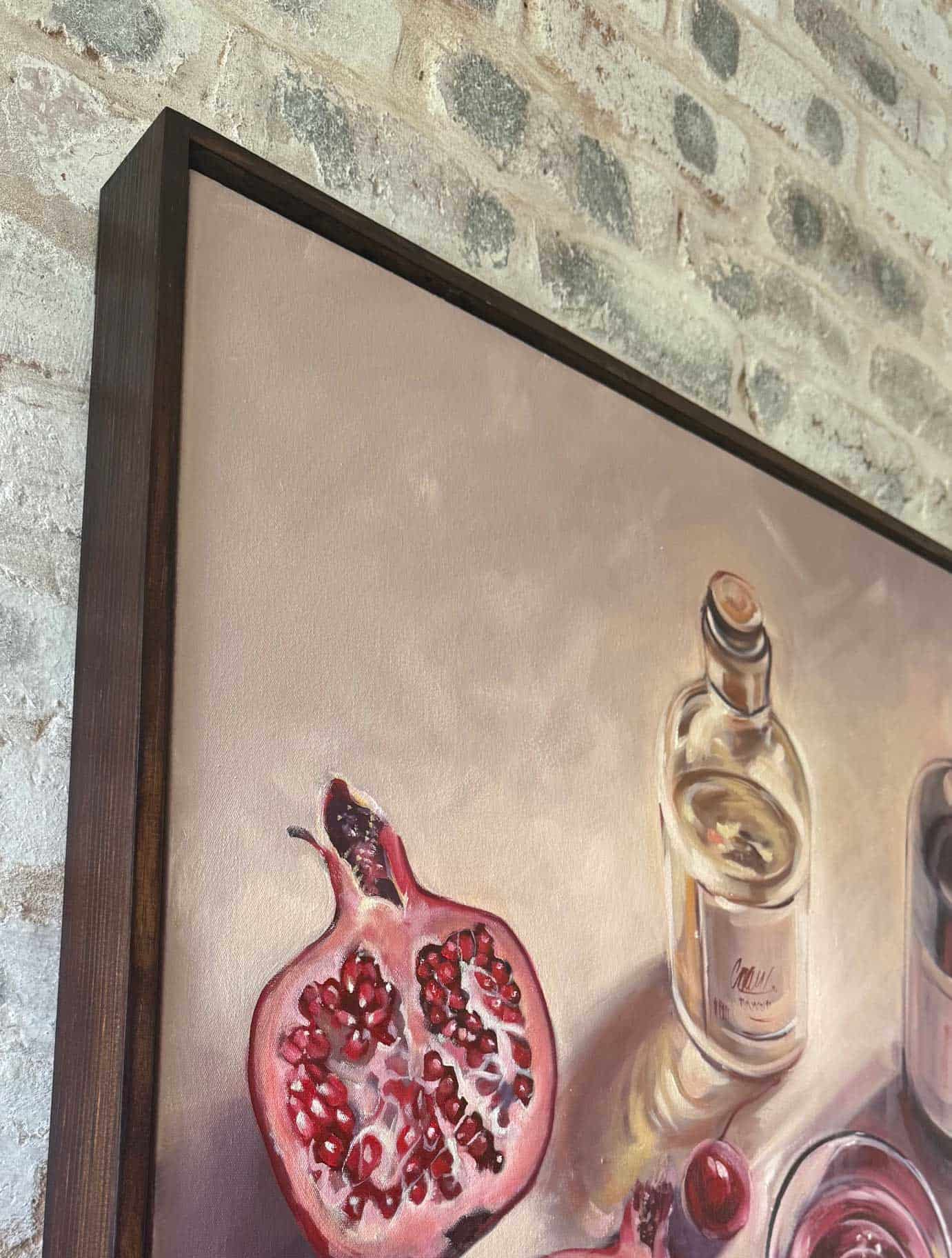 Framed Still life -Good Fortune, wine and figs oils on canvas